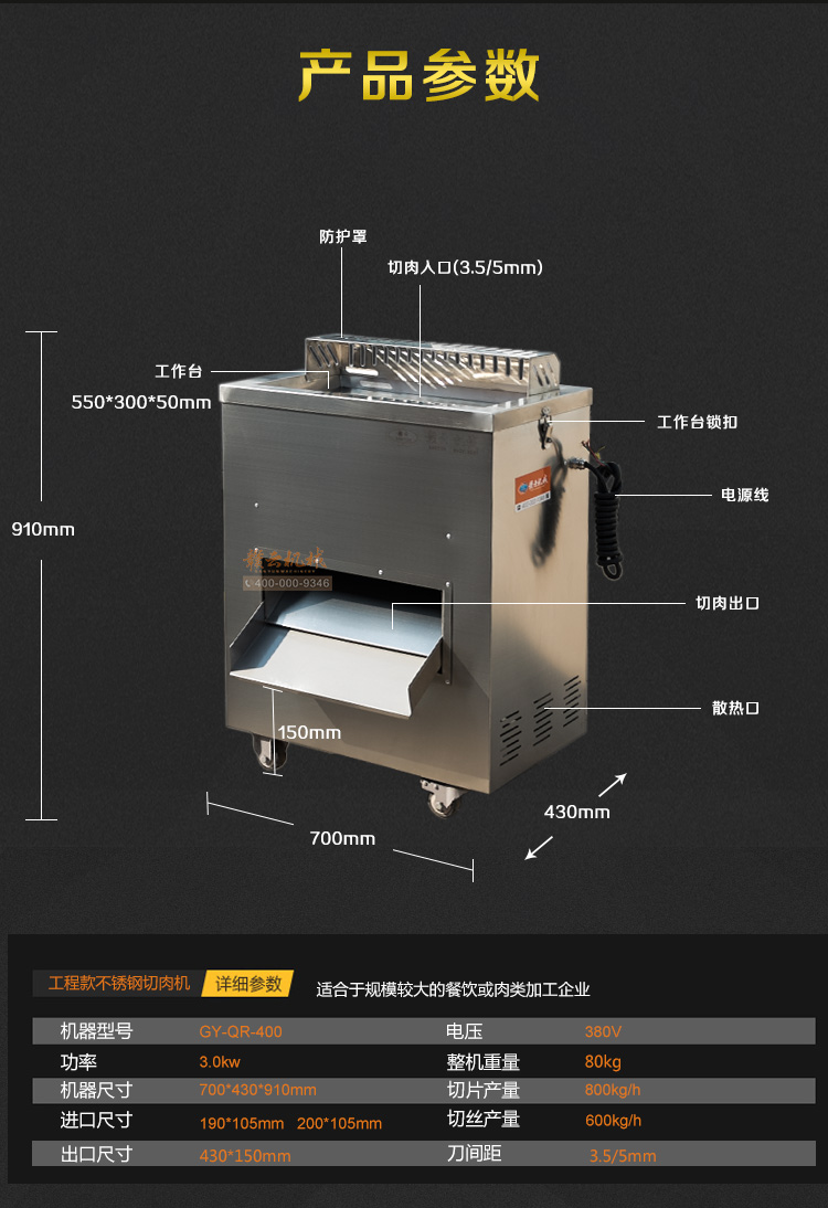 贛云2017款大型切肉機,工程款切肉片肉絲機,采用1.2mm304不銹鋼板材加工設計,配備3kw大功率純銅電機,380v工業用電,使得產品性能穩定,雙滾切刀設計,切肉效率高,雙規格切肉刀具組合,適合大眾需求。