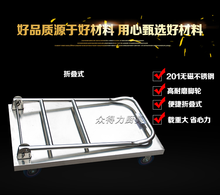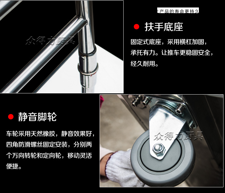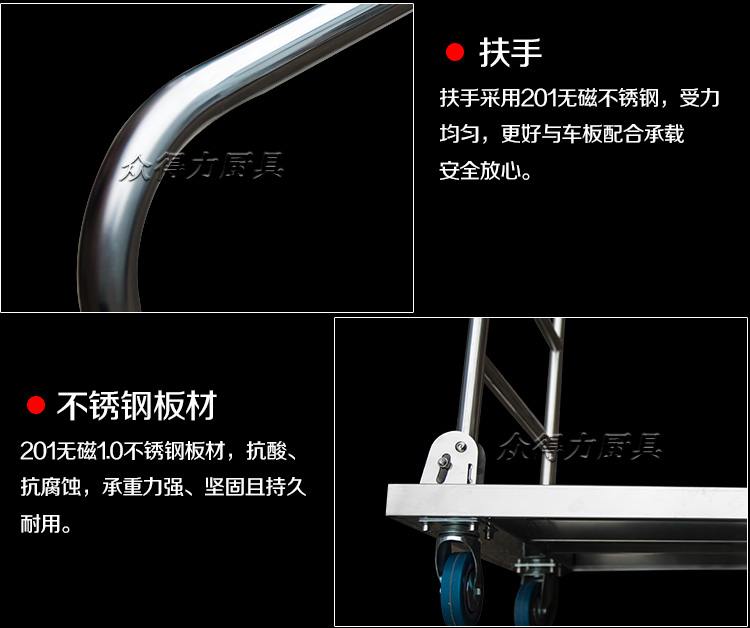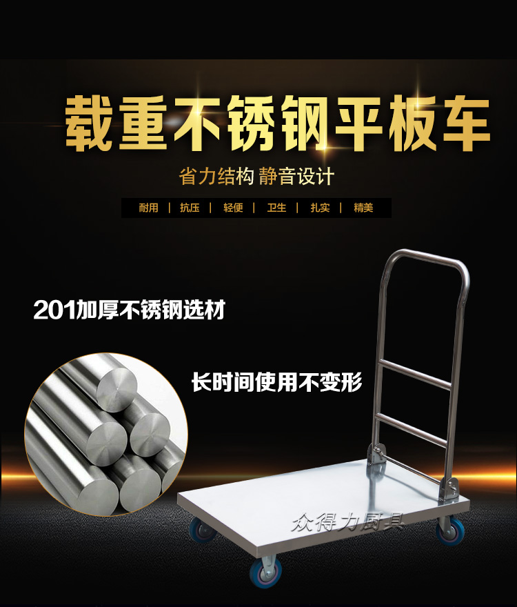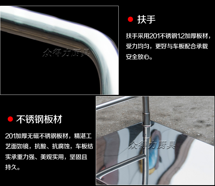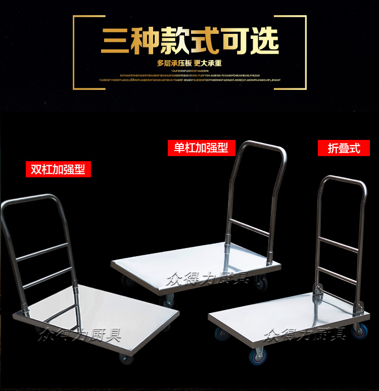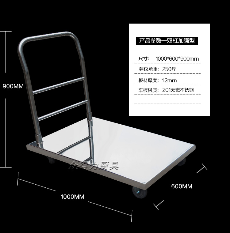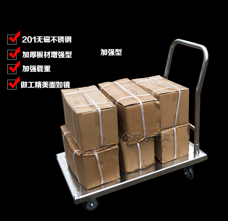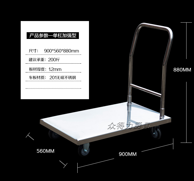 本推車有加強款,普通款,加強款推車采用201加厚不銹鋼板材設計,承載能力強,質量穩定可靠。歡迎選購