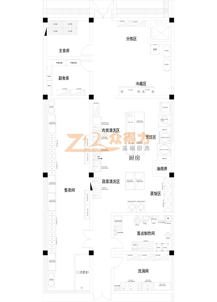 江西眾得力廚具有限公司設(shè)計(jì)的興國(guó)學(xué)校廚房工程設(shè)計(jì)規(guī)劃案例